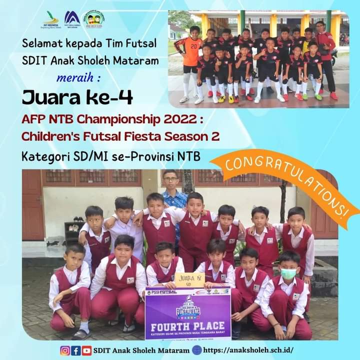 Sukses selalu tim futsal SDIT Anak Sholeh Mataram, pantang menyerah memberikan yang terbaik.
