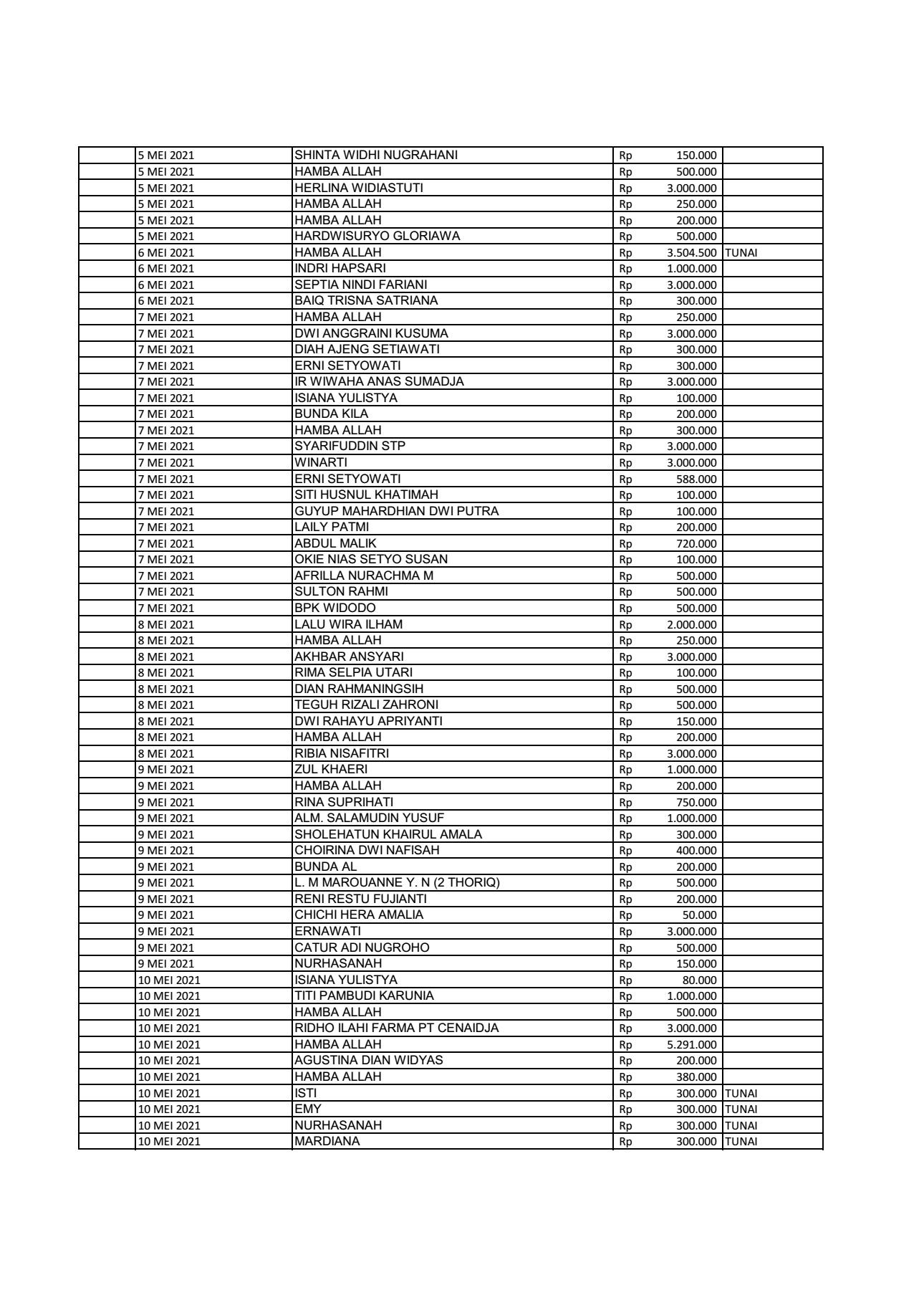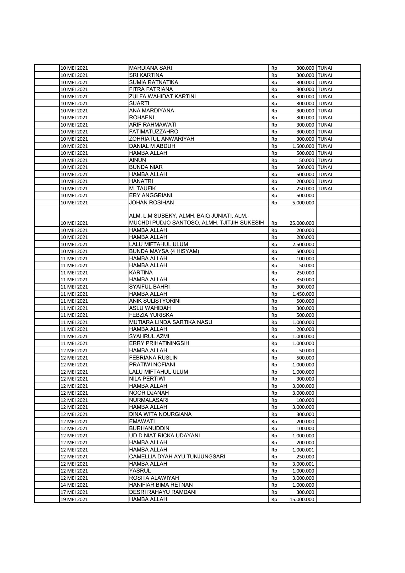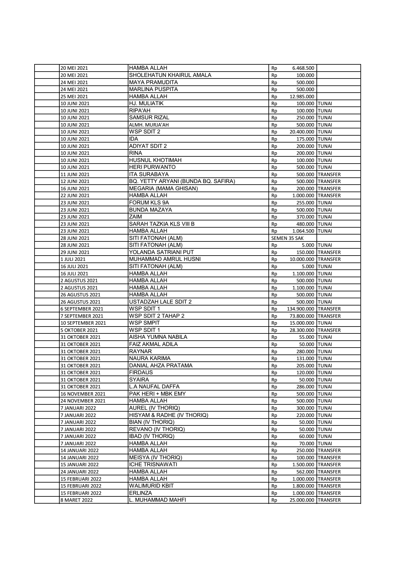 Donatur Masjid Ibnu abbas 3 Per Mei 2022